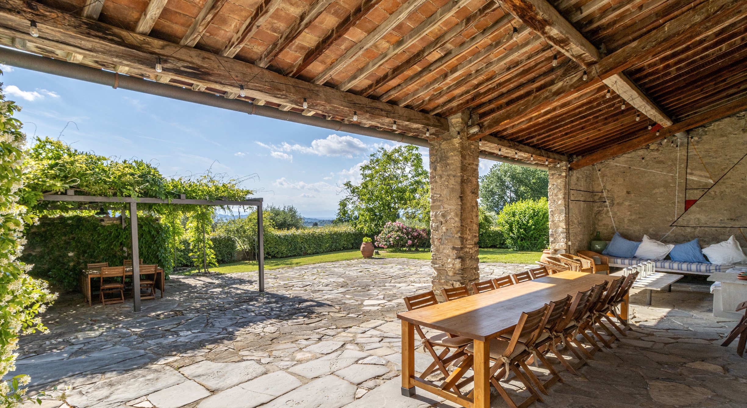Long dining tables and a generous kitchen invite everyone to cook, share, and linger.